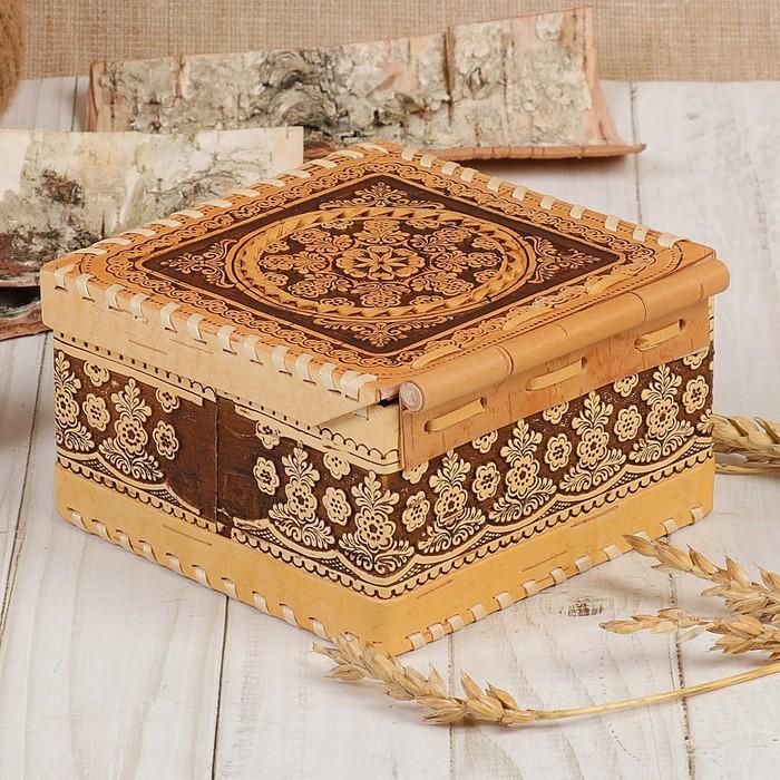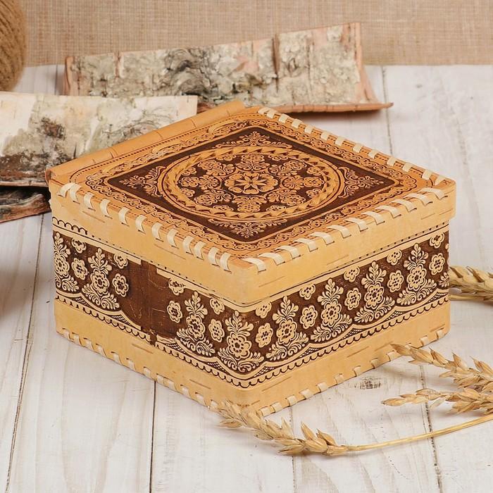 Шкатулка «Узор», шарнирная, 13х13х7 см, береста