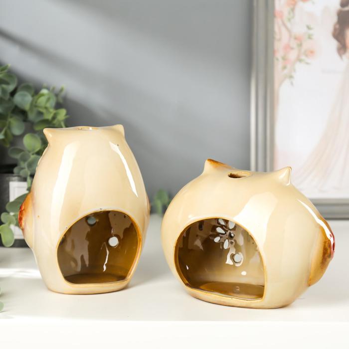 Подсвечник керамика "Совушки с цветами" набор 2 шт 14х11х7, 15,5х11,5х7,5 см