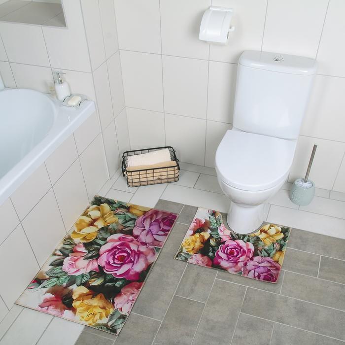 Набор ковриков для ванны и туалета Доляна «Розы», 2 шт: 40×45, 45×75 см
