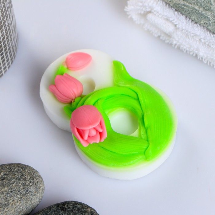 Мыло фигурное "8-ка белая с тюльпанами" 60г