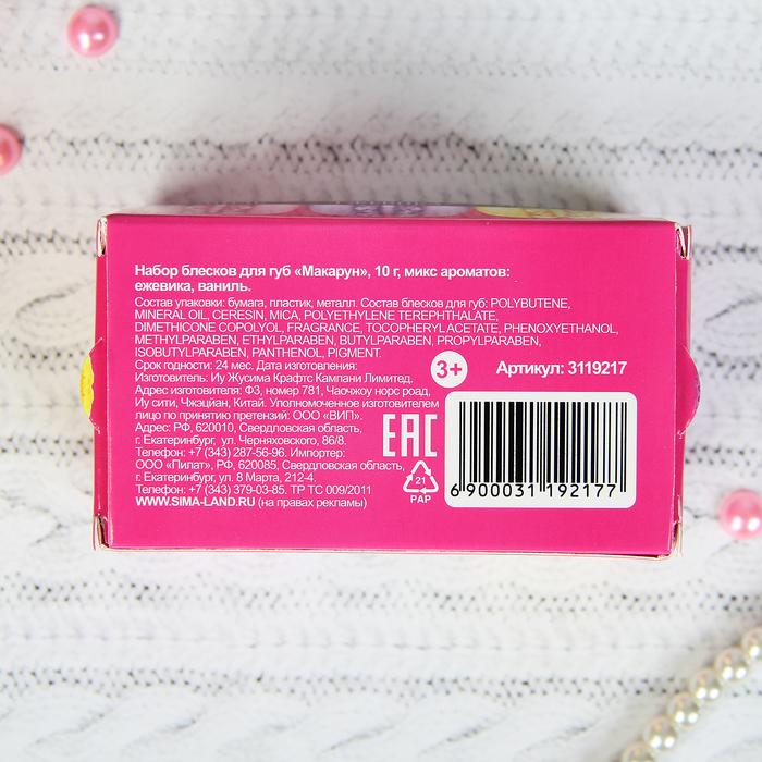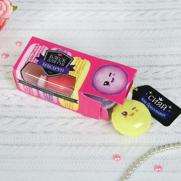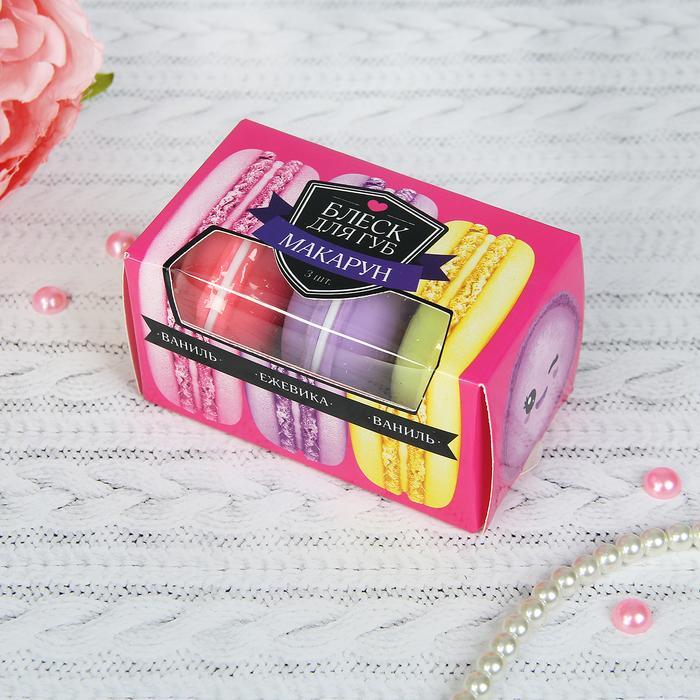 Блеск для губ "Макарун", набор 3 шт. по 10 г, аромат: ежевика и ваниль