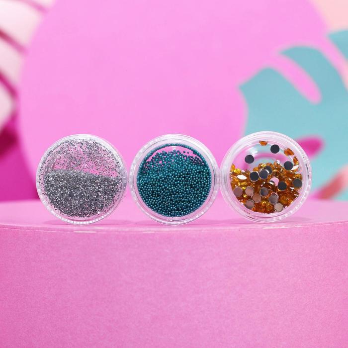 Набор для идеального маникюра «Beauty-вечеринка» (гель-лак, топ, база и 3 баночки с декором)