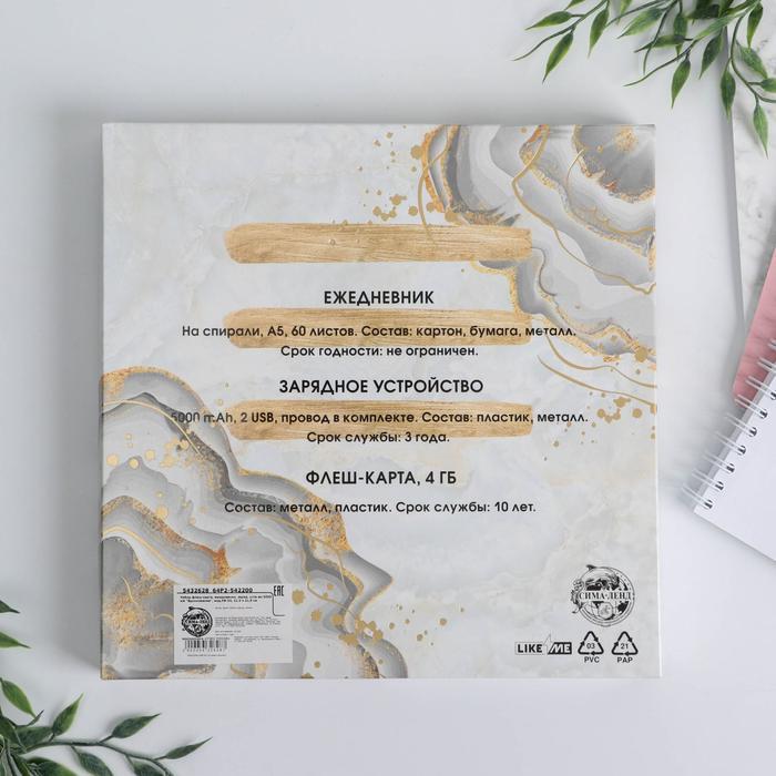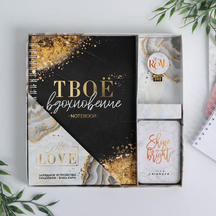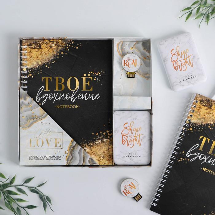 Набор флеш-карта, ежедневник, внешний аккумулятор 5000 mAh «Вдохновение», 21,5 х 21,5 см