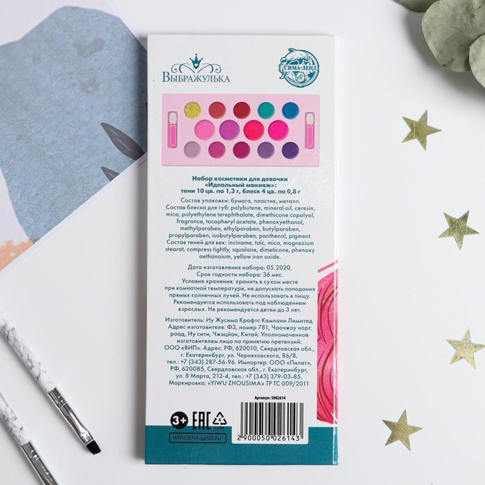 Набор косметики для девочки «Идеальный макияж» тени 10 цв по 1,3 гр, блеск 4 цв по 0,8 гр