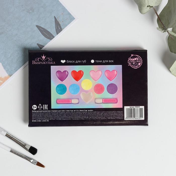 Набор косметики для девочки «Сюрприз для тебя», тени 5 цв по 1,3 гр, блеск 5 цв по 0,8 гр