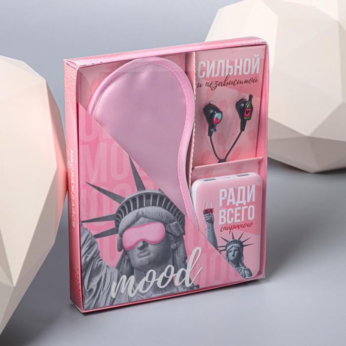 Набор маска для сна, наушники вакуумные и внешний аккумулятор 5000 mAh Mood, 20,5 х 16,5 см