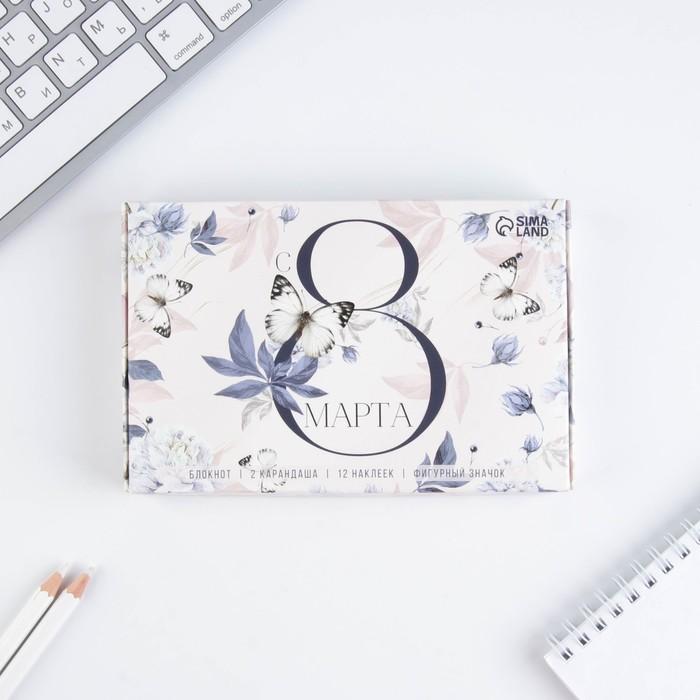 Подарочный набор «8 марта» блокнот, значок, наклейки и карандаши 2 шт