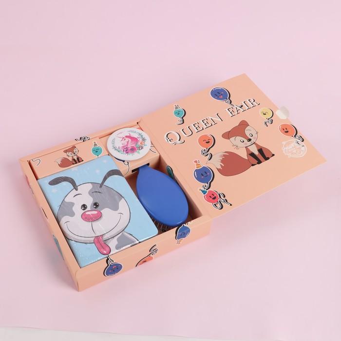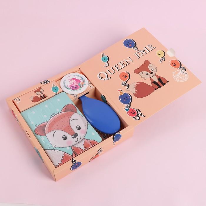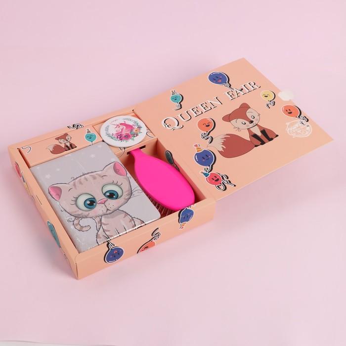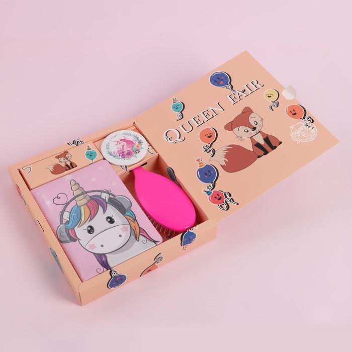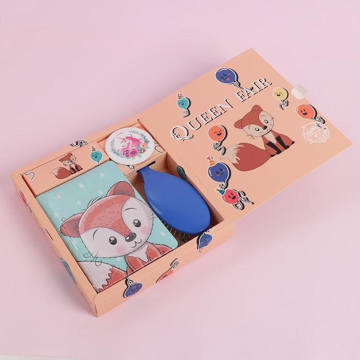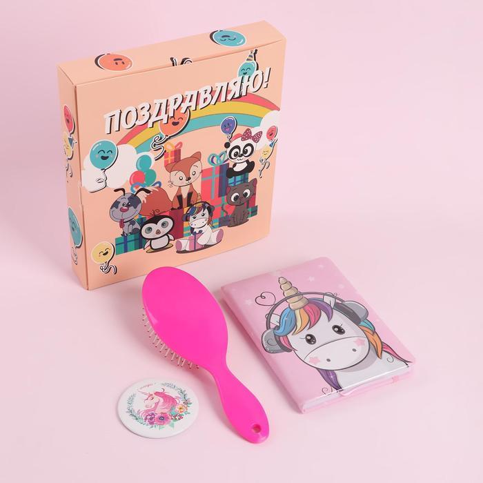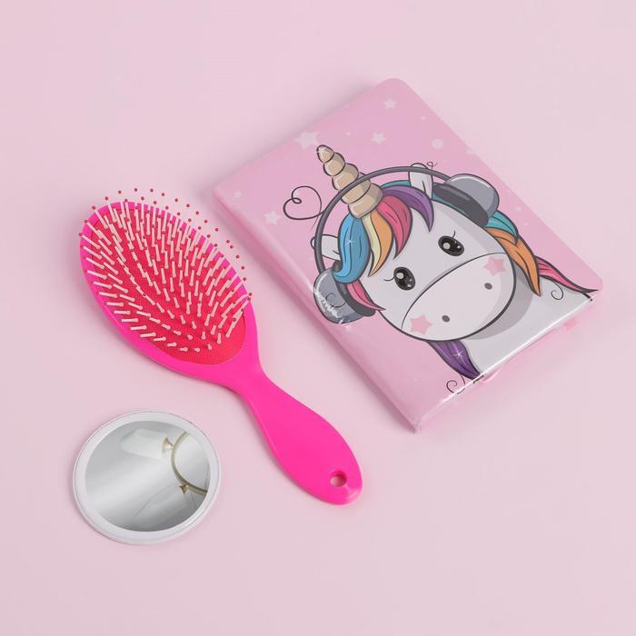 Подарочный набор «Детский», 3 предмета: зеркало, массажная расчёска, ежедневник, рисунок МИКС