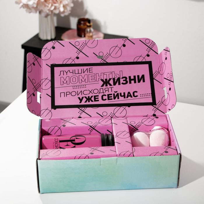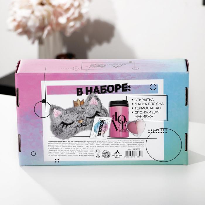 Подарочный набор "Добавь яркости", маска для сна, термостакан, спонж 2шт, открытка
