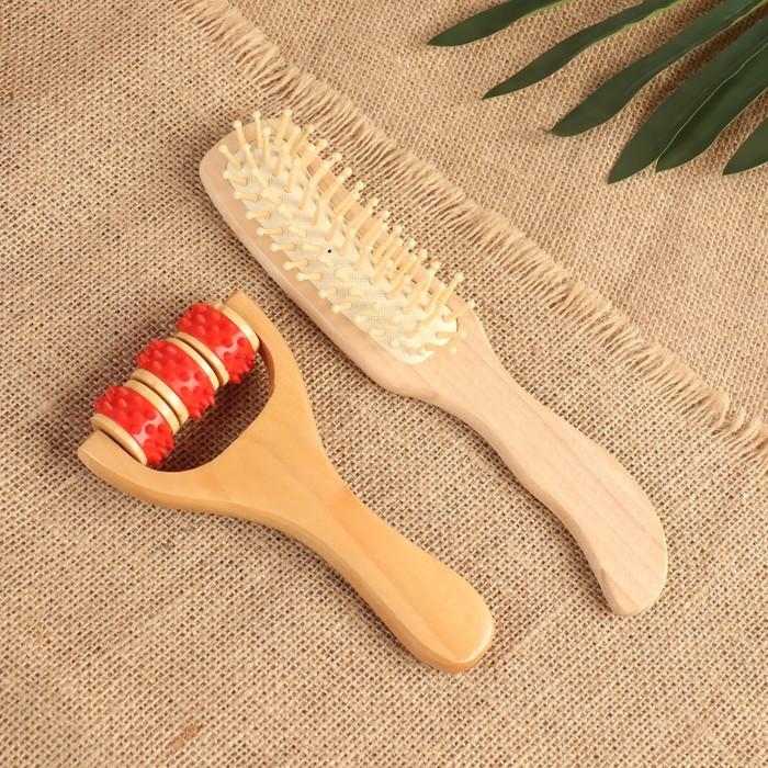 Подарочный набор «Натуральность», 2 предмета: массажёр, массажная расчёска, цвет МИКС