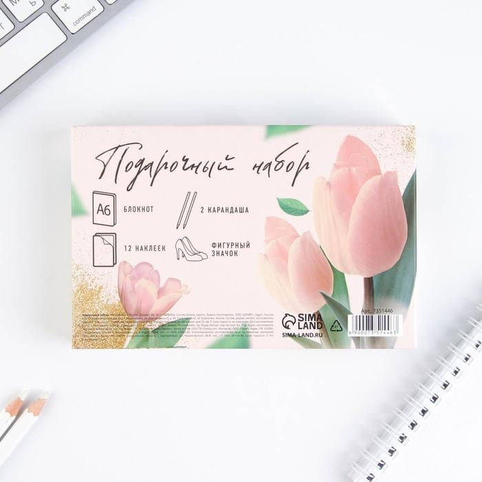 Подарочный набор «Самой лучшей» блокнот, значок, наклейки и карандаши 2 шт