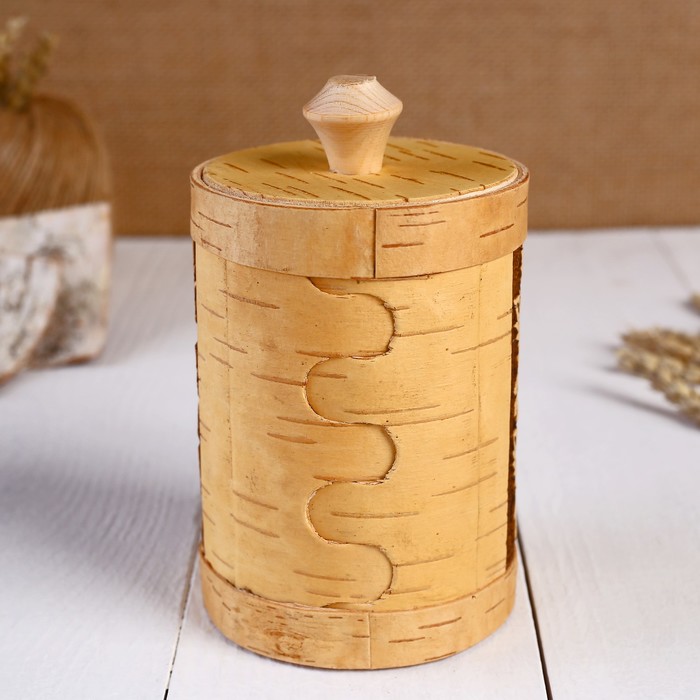 Туес "Бабочки в цветах", круглый, 9х9х15 см, береста