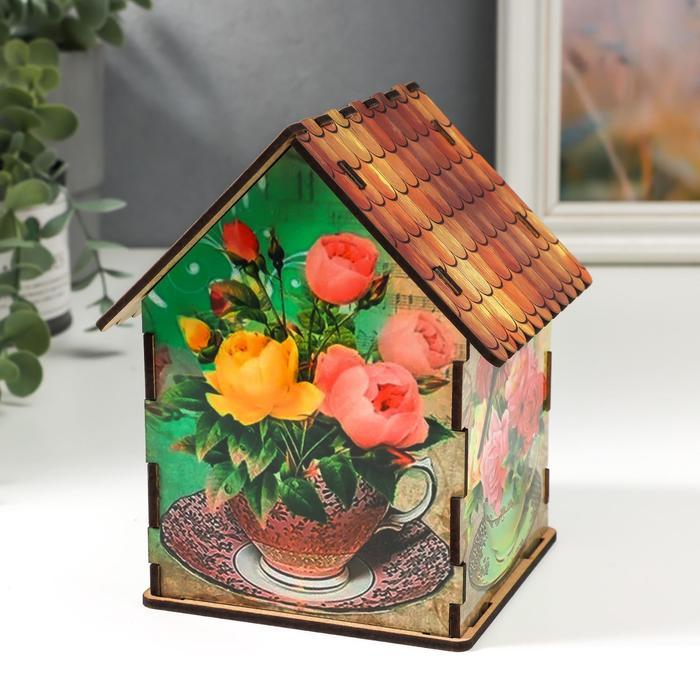 Чайный домик "Домик с розами и птичками" 15х10х10 см МИКС