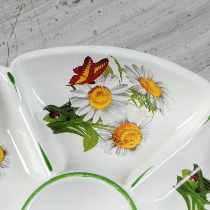 Менажница "Цветы", 6 отделений, белая, деколь микс