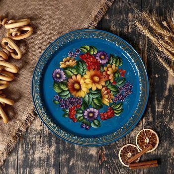 Поднос с жостовской росписью, D=34 см