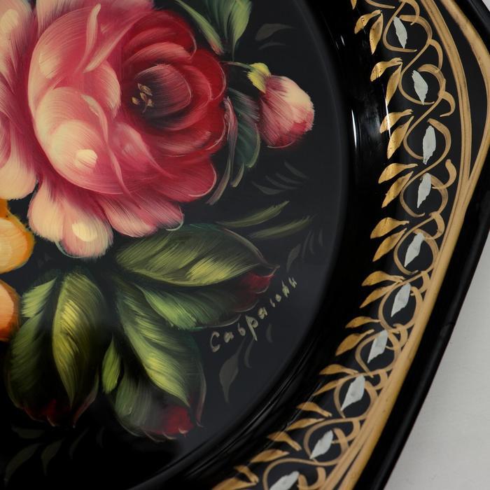Поднос жостовский "Цветы", автор Владыкина, D=17 см, малый, круг