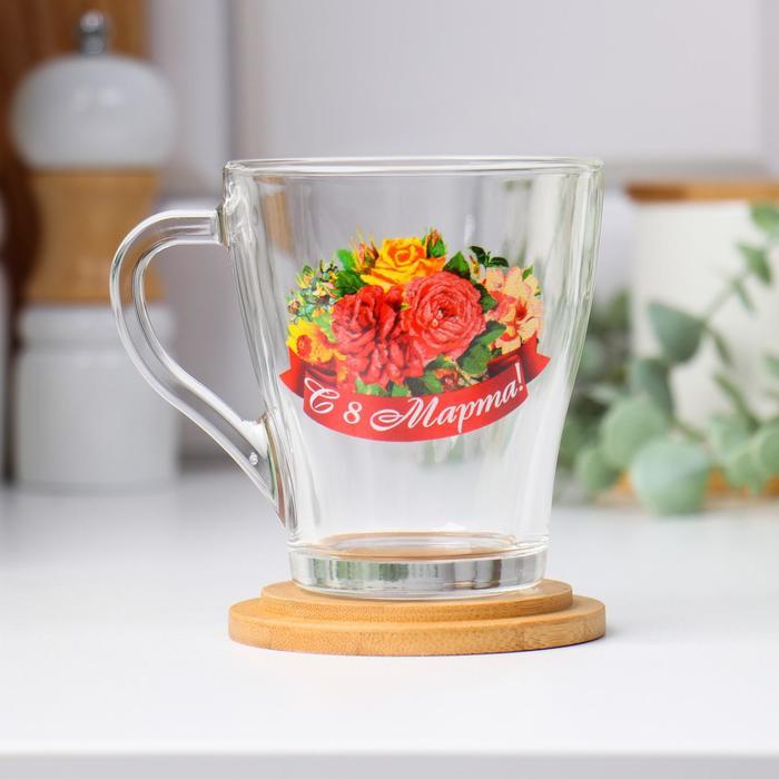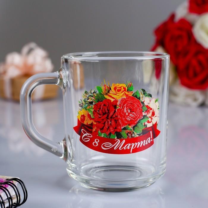 Кружка "С 8 Марта!" цветы, красная лента, 200 мл
