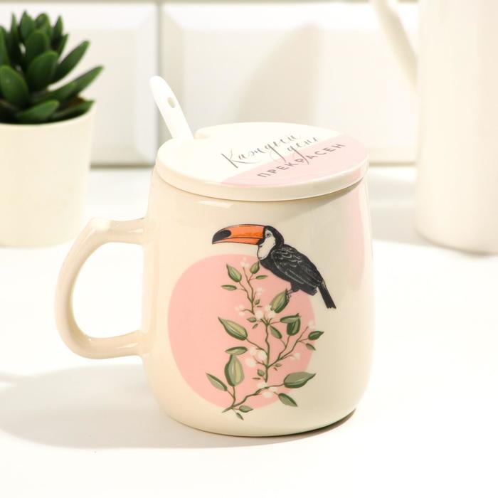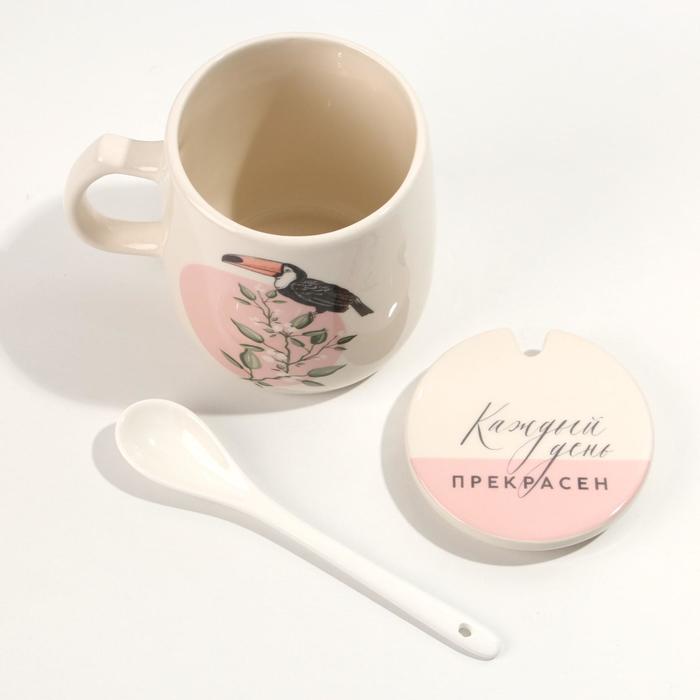 Кружка с крышкой и ложкой "Каждый день прекрасен", 450 мл