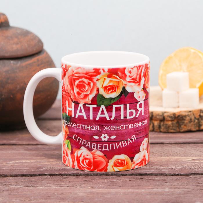Кружка с сублимацией "Наталья" цветы, 320 мл