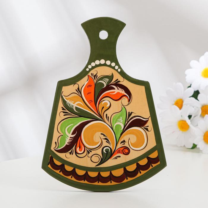 Досочка разделочная «Фигурная», 12×0,8×17 см, зелёная, ракульская роспись
