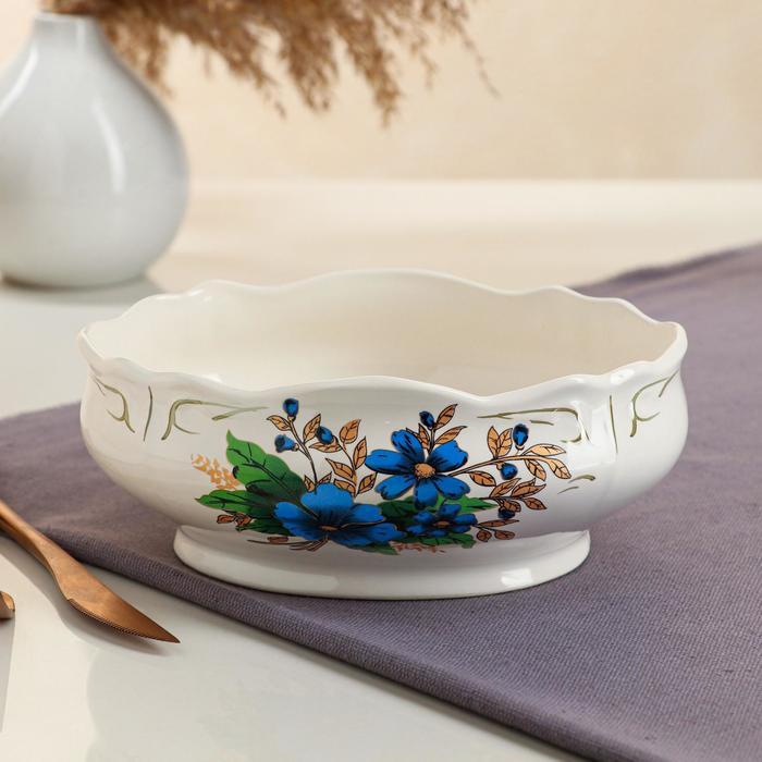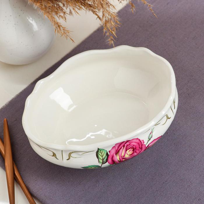 Салатник "Овал", белый, цветы, 1 л, деколь микс