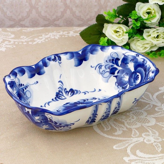 Салатник «Весна», 14×20×6 см, гжель