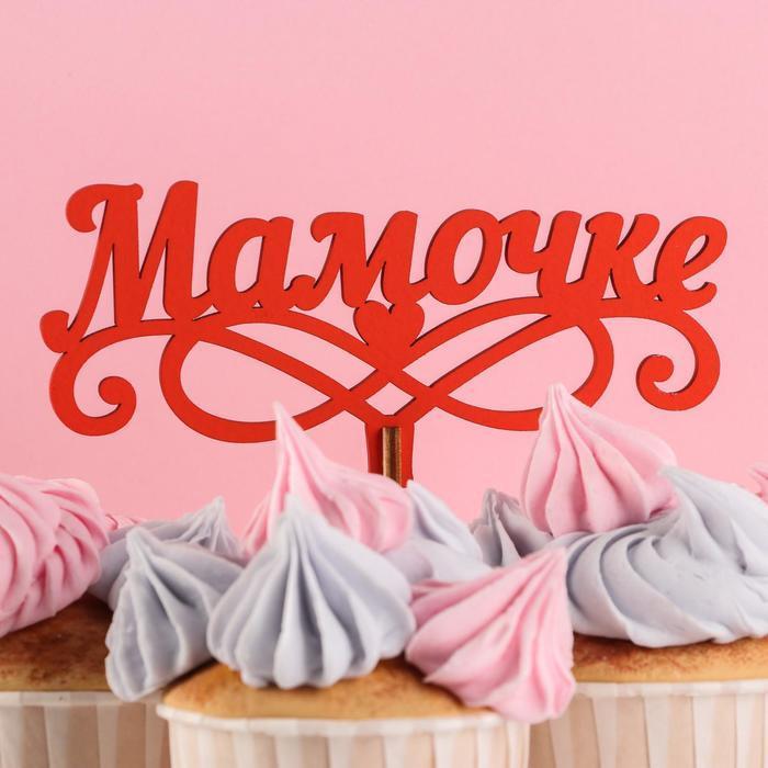 Топпер деревянный "Мамочке, вензеля, сердце", красный