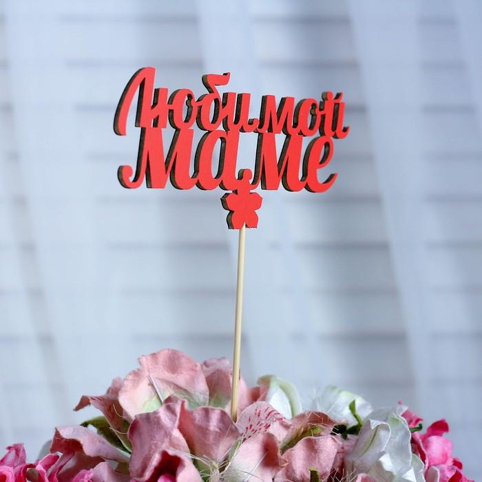 Топпер «Любимой маме», красный, 12,5×6 см