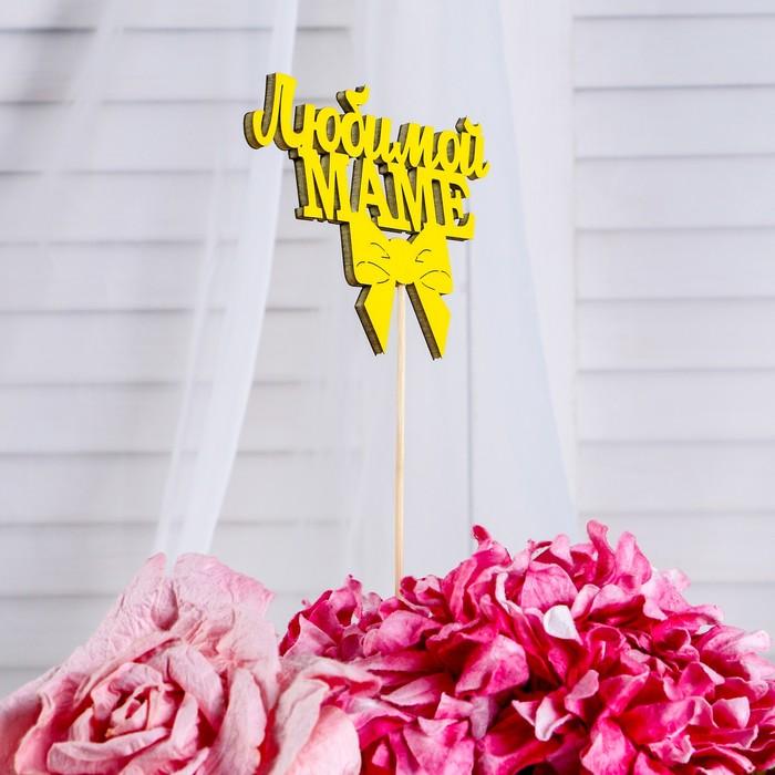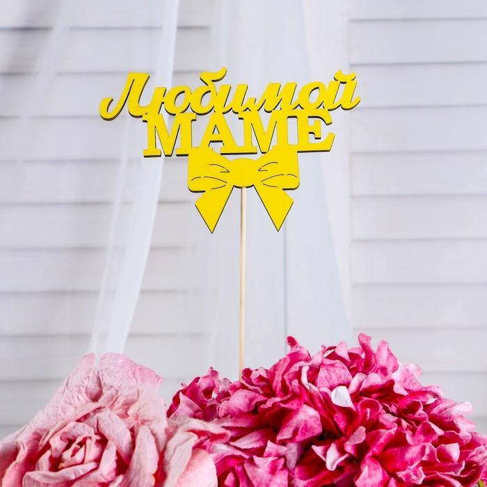 Топпер «Любимой маме», жёлтый, 12,5×8 см