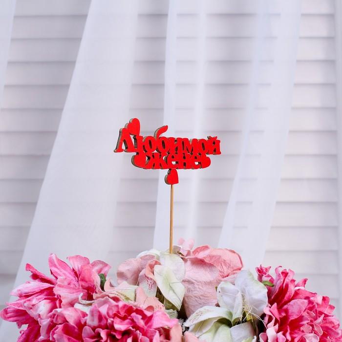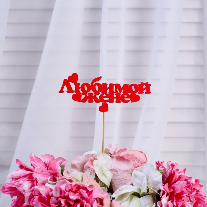 Топпер «Любимой жене», красный, 12,5×5 см