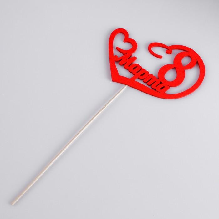 Топпер "С 8 марта", сердце, красный, 12.5х11см Дарим Красиво