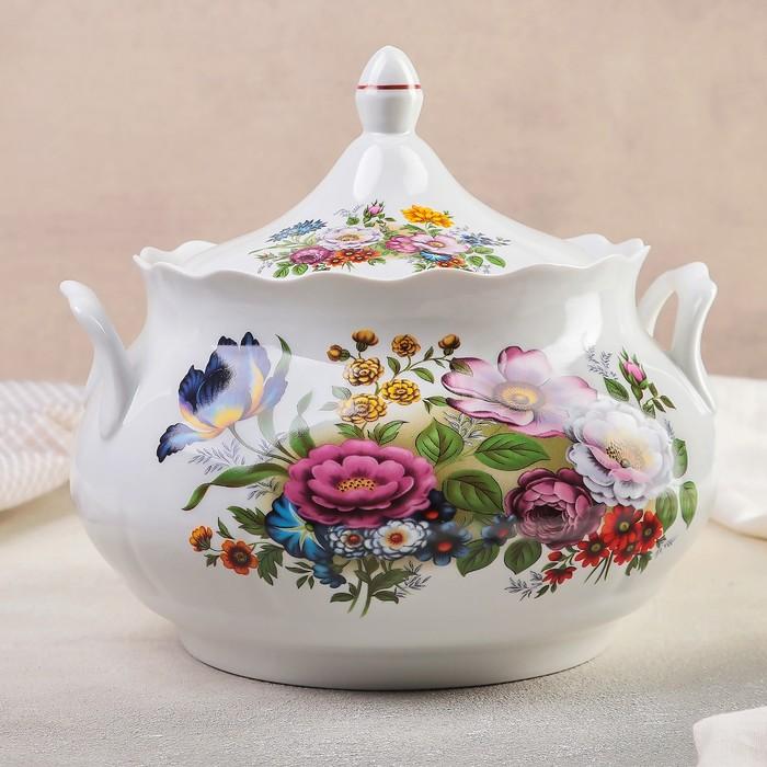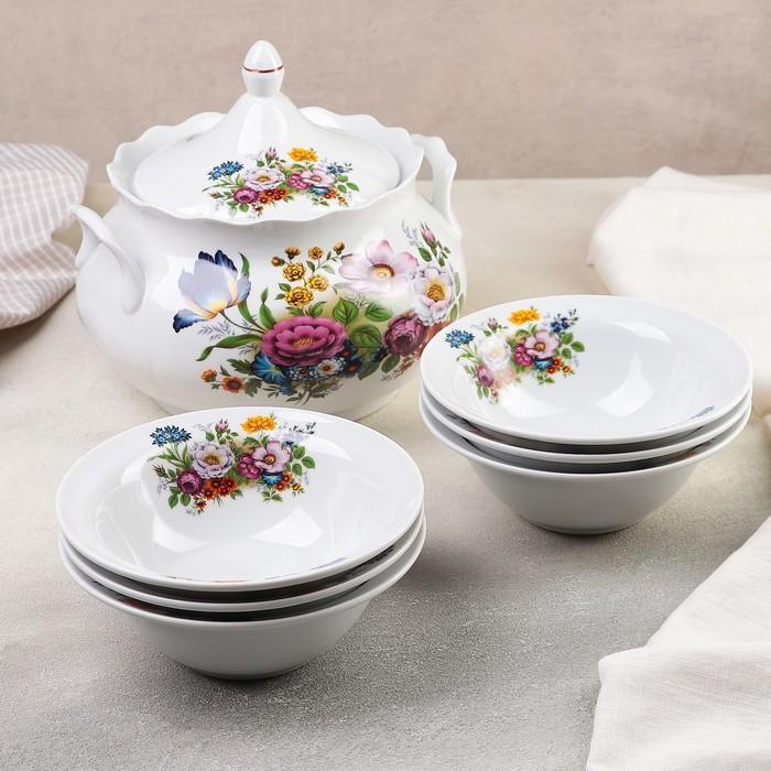 Набор для пельменей «Букет цветов», 7 предметов: ваза для супа 3 л, 6 мисок 600 мл