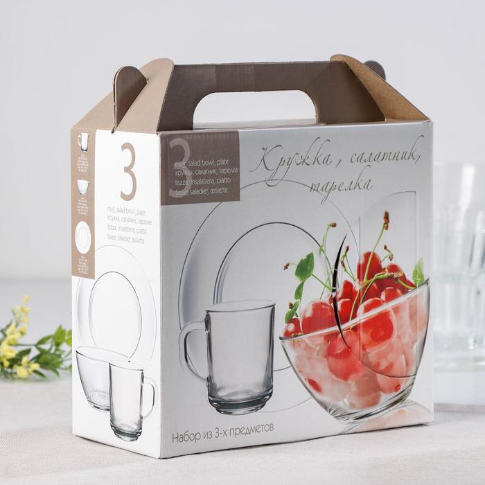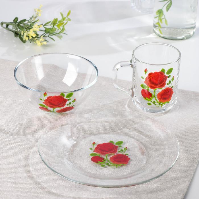 Набор для завтрака «Алая роза», 3 предмета: тарелка d=20 см, салатник d=13 см, кружка 250 мл, цвет МИКС