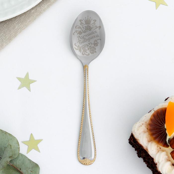 Ложка чайная в подарочной коробке "Лучшая бабушка", 2,9 х 15,2 см изготовлена из нержавеющий стали, узор нанесен на черпак при помощи лазерной гравировки, – это позволяет использовать подарок по прямому назначению. Сувенир преподносится в индивидуальной подарочной упаковке с красочным дизайном.