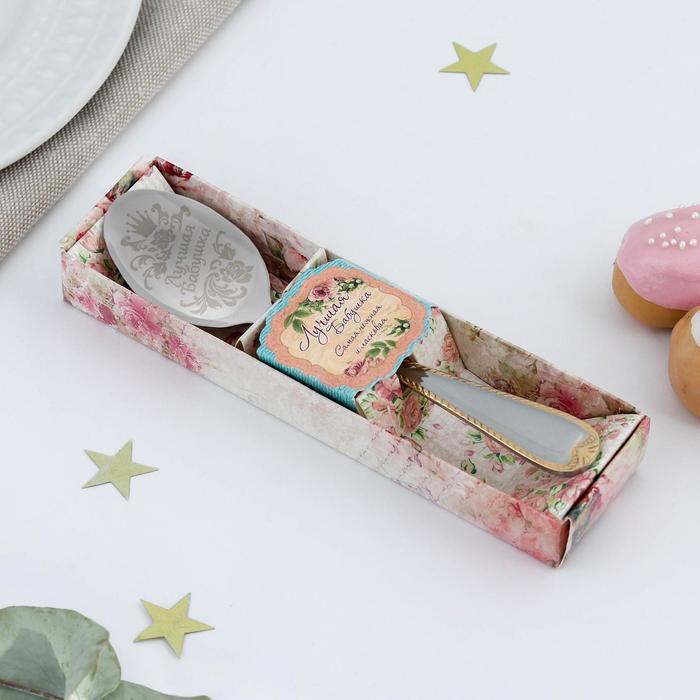 Ложка с гравировкой чайная в подарочной коробке "Лучшая бабушка"