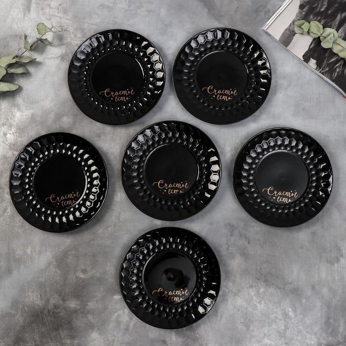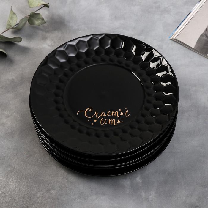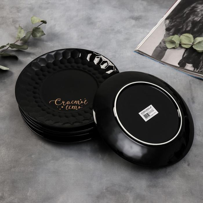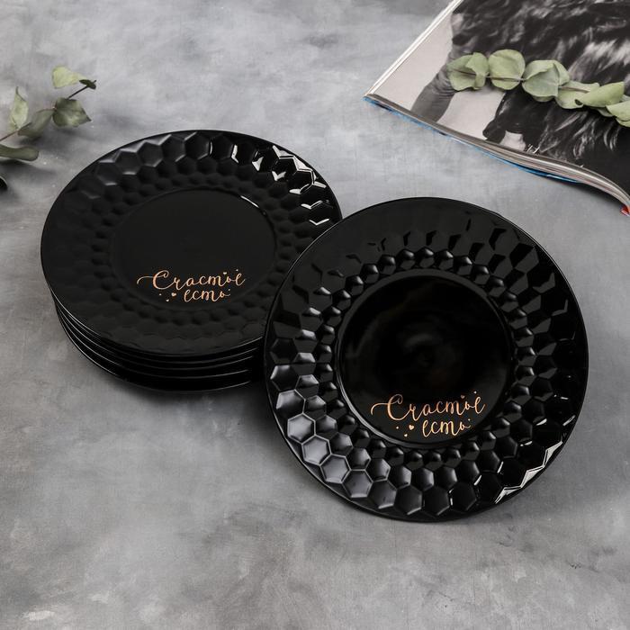 Набор тарелок полигонал «Счастье есть», 20 см, чёрные, 6 шт