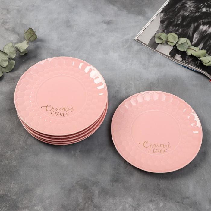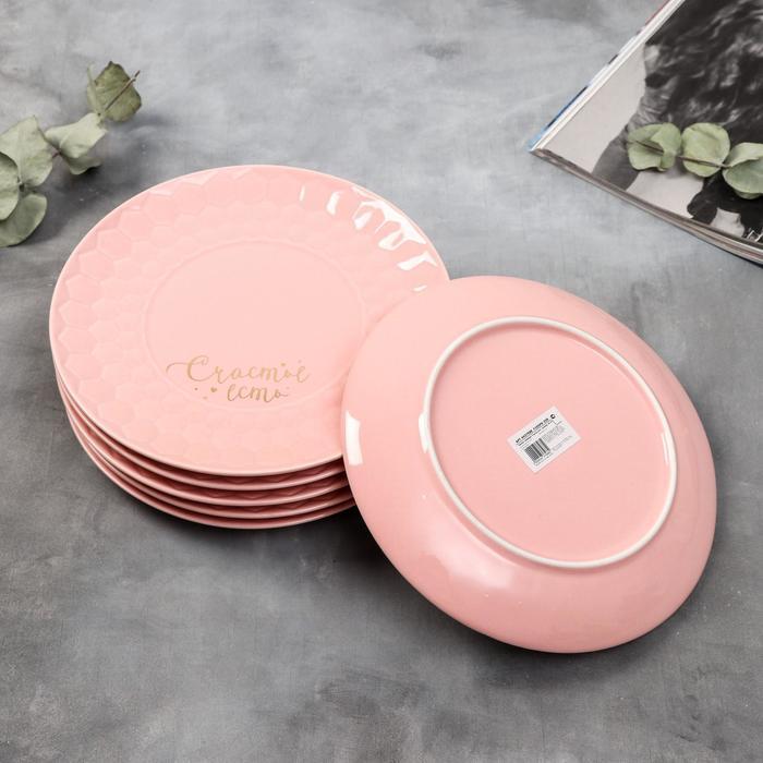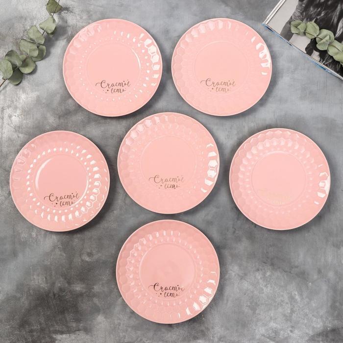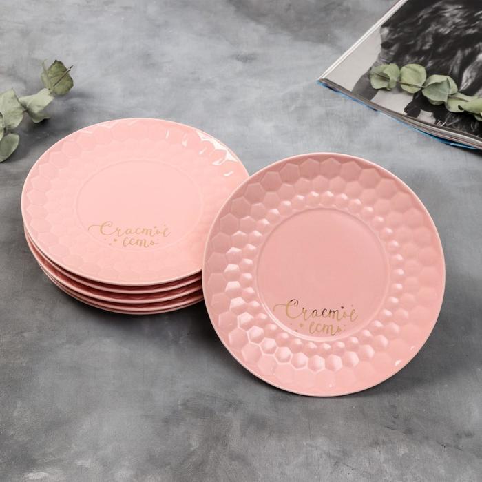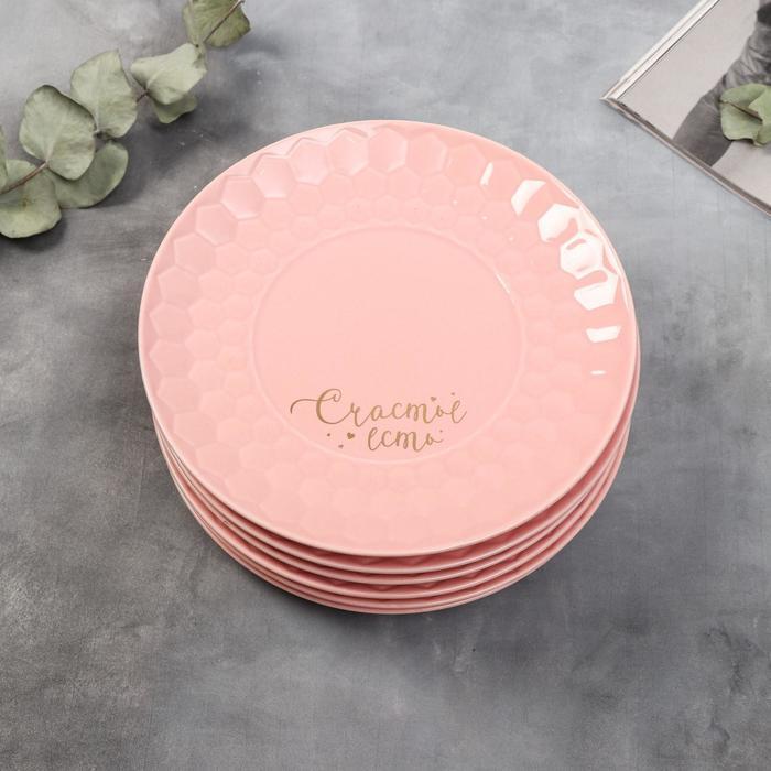 Набор тарелок полигонал «Счастье есть», 20 см, розовые, 6 шт
