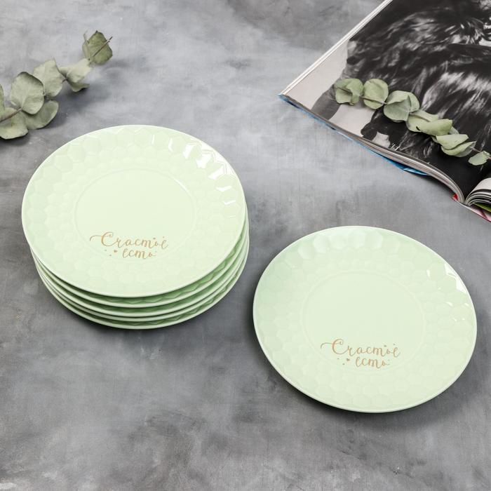 Набор тарелок полигонал «Счастье есть», 20 см, зелёные, 6 шт