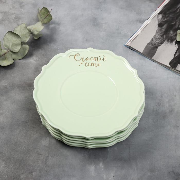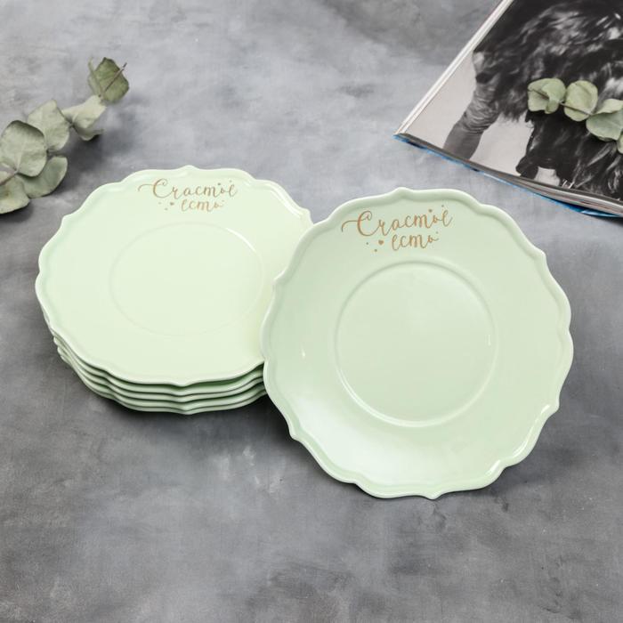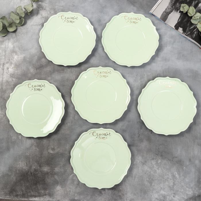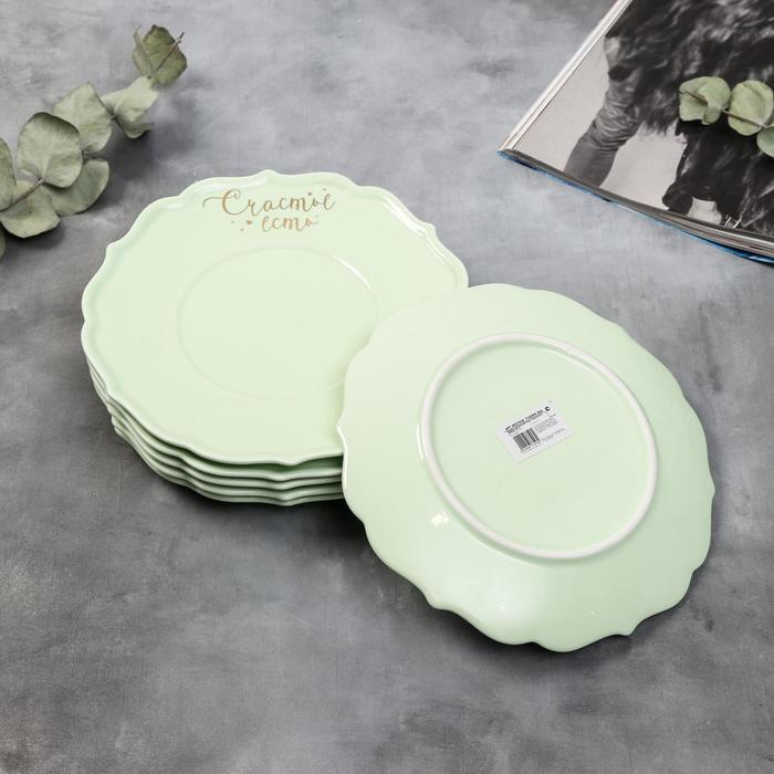 Набор тарелок «Счастье есть», 20 см, зелёные, 6 шт