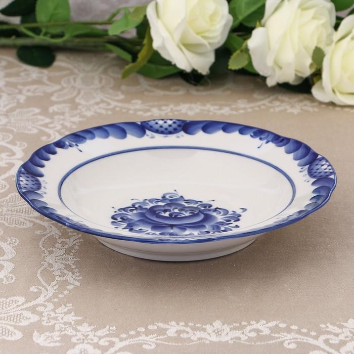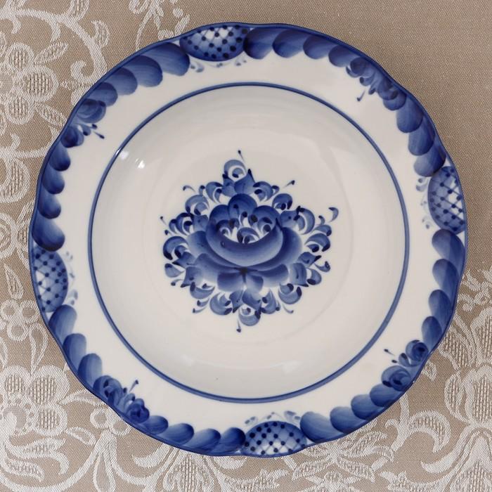 Тарелка «Цветы», глубокая, D=24 см, H=4 см, гжель