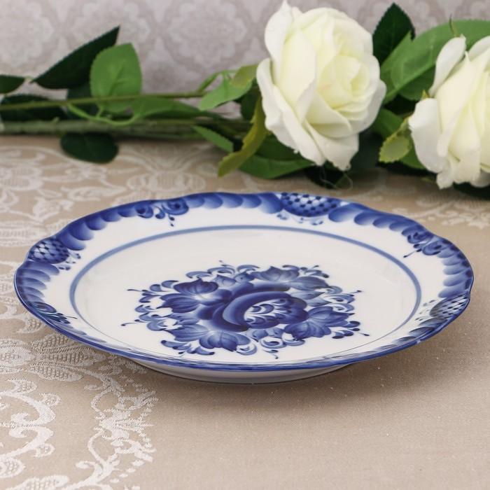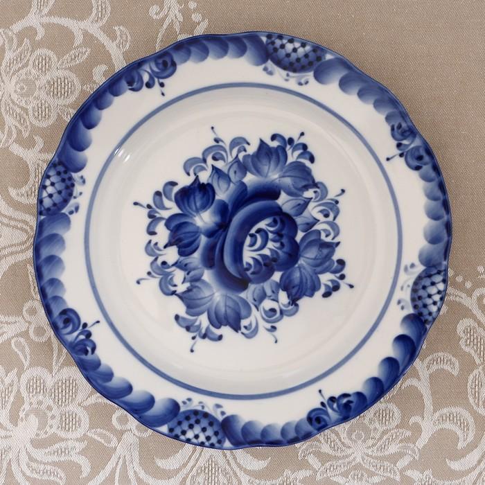 Тарелка «Цветы», плоская, D=24 см, H=2 см, гжель