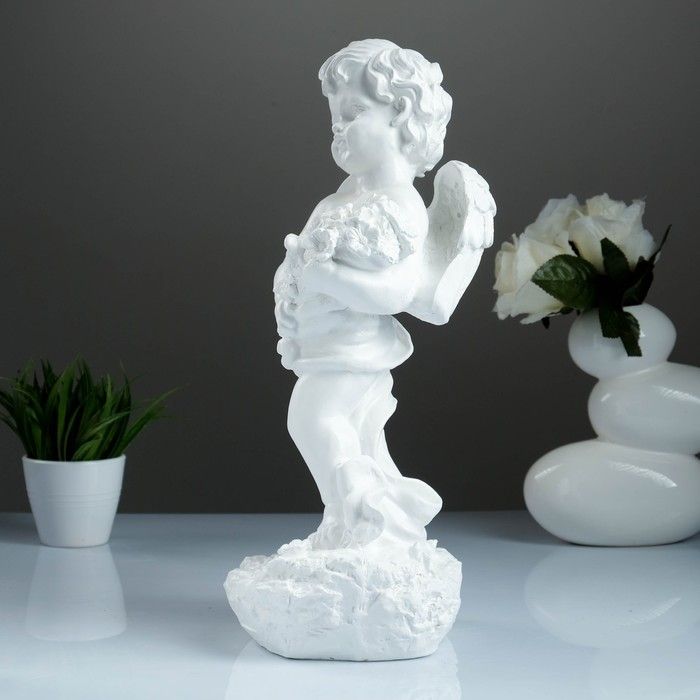 Фигура "Ангел с цветами" большой белый 20х19х42см