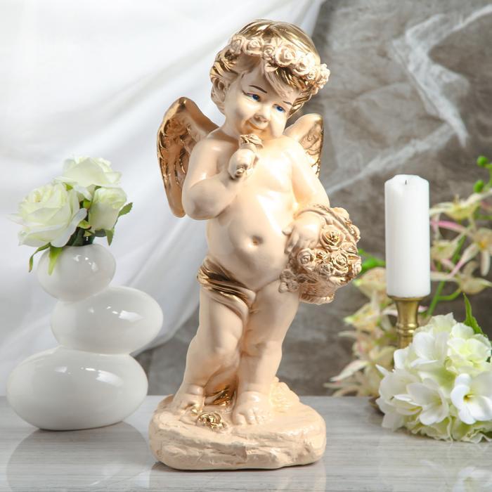 Статуэтка "Ангел с корзиной", бежевая, 47 см
