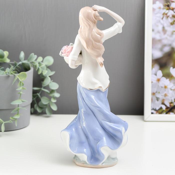Сувенир керамика "Девушка в голубом с корзиной роз" 30х9х11,5 см