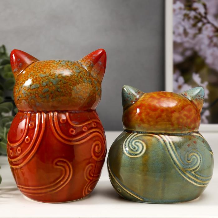 Сувенир керамика "Филины с цветочками на пузе" набор 2 шт 11,5х11х7 16,6х10,3х7 см
