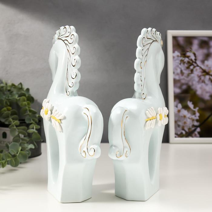 Сувенир керамика "Лошадки с незабудками" голубой набор 2 шт 25х15,5х6 см