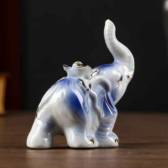 Сувенир керамика "Слонёнок с розой на спине" синий с золотом, страза 9х9х3,8 см