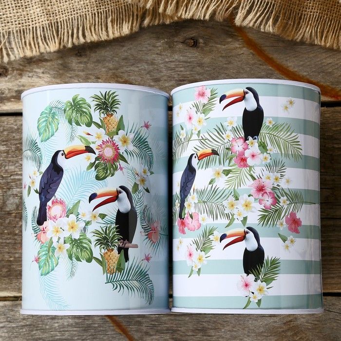 Копилка металл банка "Туканы и цветы" МИКС 15х10х10 см