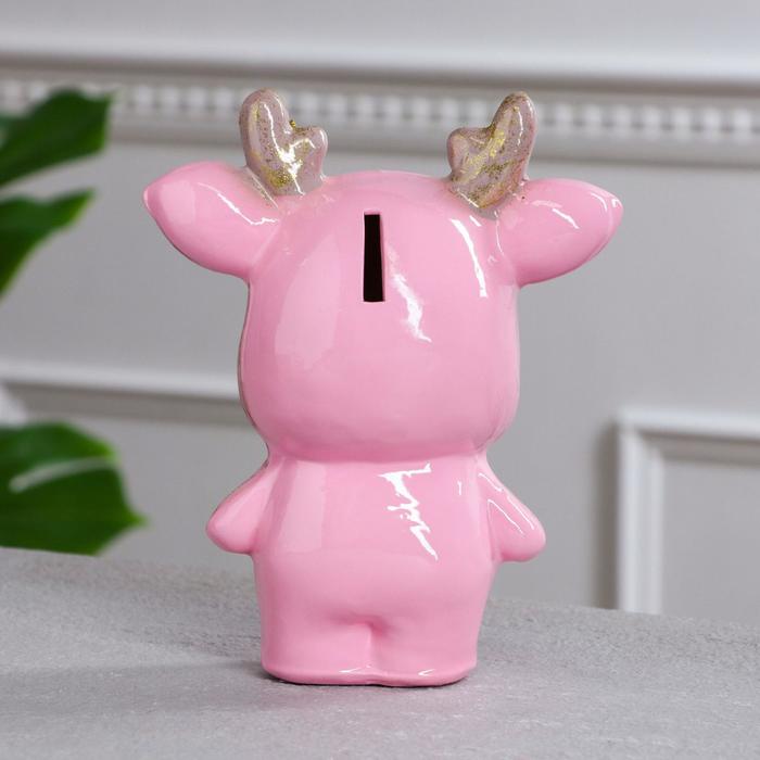 Копилка "Оленёнок", розовая, керамика, 19 см