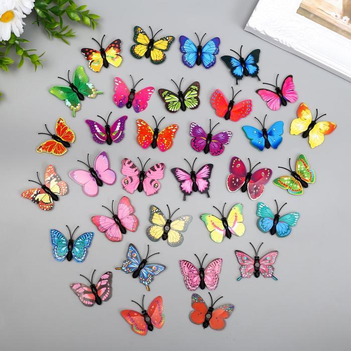 Магнит пластик "Бабочка одинарные крылышки разноцветные" 4,5 см
